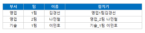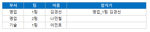 아래와 같은 표가 있고, 각 열의 텍스트를 합쳐야 할 때 사용하면 편리하다.