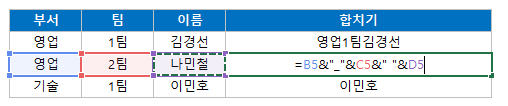 3개의 셀을 &를 사용하여 단순하게 합치는거다.